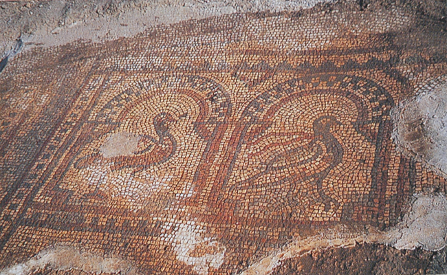Bu yapıların içerisinde boyut olarak en büyüğü, duvarları yaklaşık 0.50-0.70 ml. yükseklikte kalabilmiş olan kilisedir. Uzunluğu 28 m. genişliği ise 15 m. olan kilisenin apsisi uzun tarafta olup, nef ayrımı bulunmamaktadır, ayrıca yanlardan iki girişi bulunmaktadır. Ortadaki yarım elips biçimli, bozulmuş harçlı taban ise Bema’nın bulunduğu yerdir. Apsis, salondan bir basamak yüksek olup, iki yanında Diakonikon ve Martyrion bölümleri yer almaktadır. Tüm bu alanlardaki döşeme mozaikli olup, salon kısmındaki tabana zürafa, fil, ayı, kaplan gibi bölgeye yabancı hayvanlar ile kuş ve bitki motifleri serpiştirilmiştir. Apsisin içinde, geometrik şekiller arasına yerleştirilmiş dinsel anlamlar taşıyan hayvan figürleri yer almaktadır. Diakonikon ve Martyrion ile muhtelif yerlerde, panolar içinde Grekçe ve Süryanice yazıtlar görülmekte, bunlar bazen tek dilli bazen çift dilli olarak izlenmektedir. Özellikle Süryanice yazıtlar Gaziantep yöresinde ünik örnekler olması açısından çok önem taşımaktadırlar.